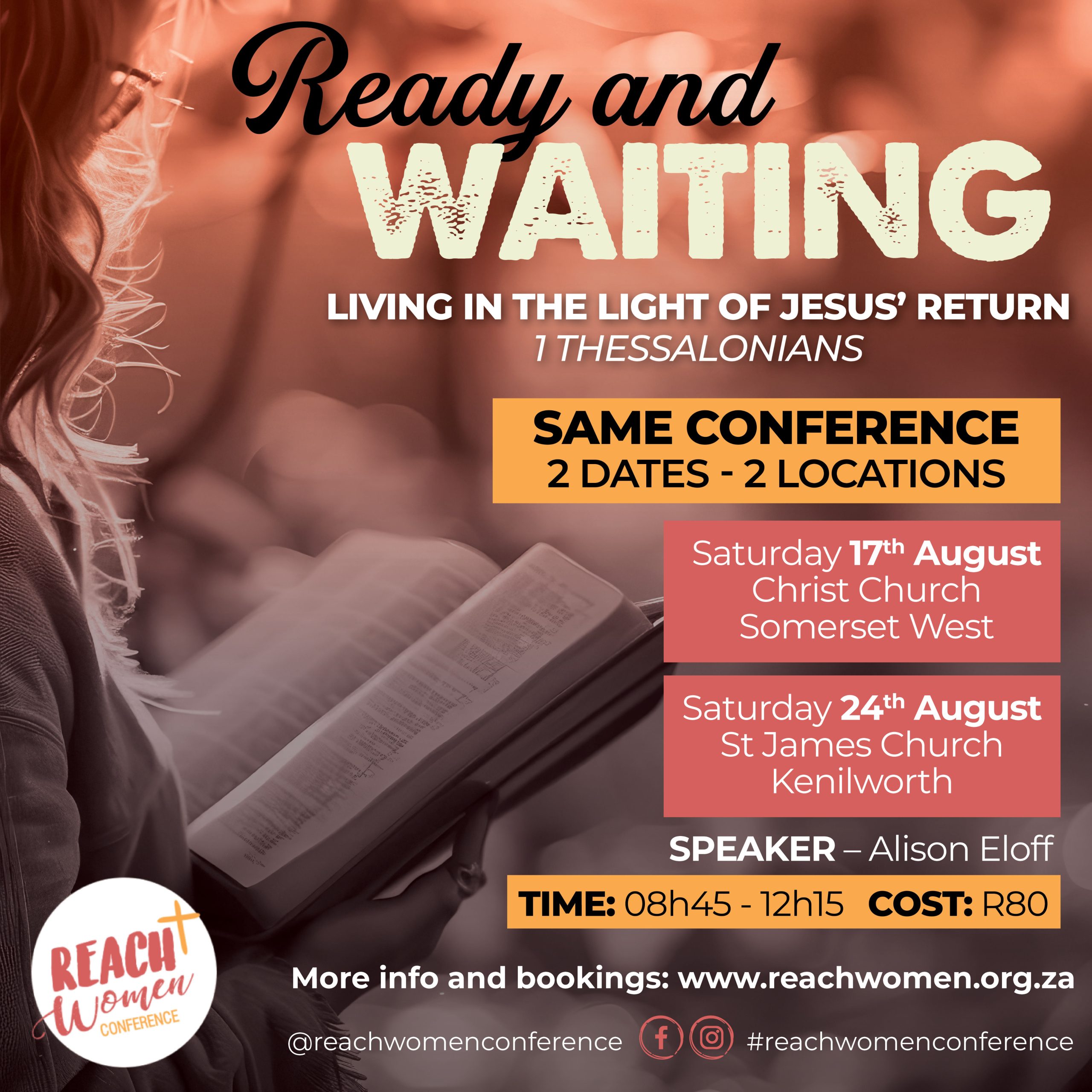 The REACH WOMEN Conference is an annual, bible-based conference for women, falling under the umbrella of a group of churches known as REACH SA www.reachsa.org.za The Conference seeks to REACH WOMEN with solid bible-teaching, vibrant praise and worship and a chance to connect with, and hear from other women.