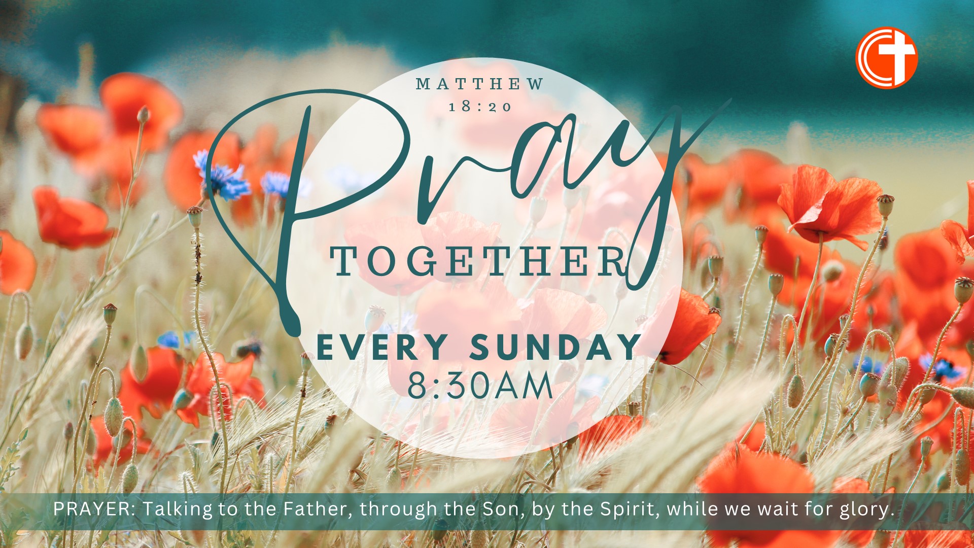 We meet every Sunday @ 8:30am (before the 9am service) to pray for our church and broader community. Some Sundays we meet after the service (after coffee) to pray for our country. We aim to finish by 11:15am.